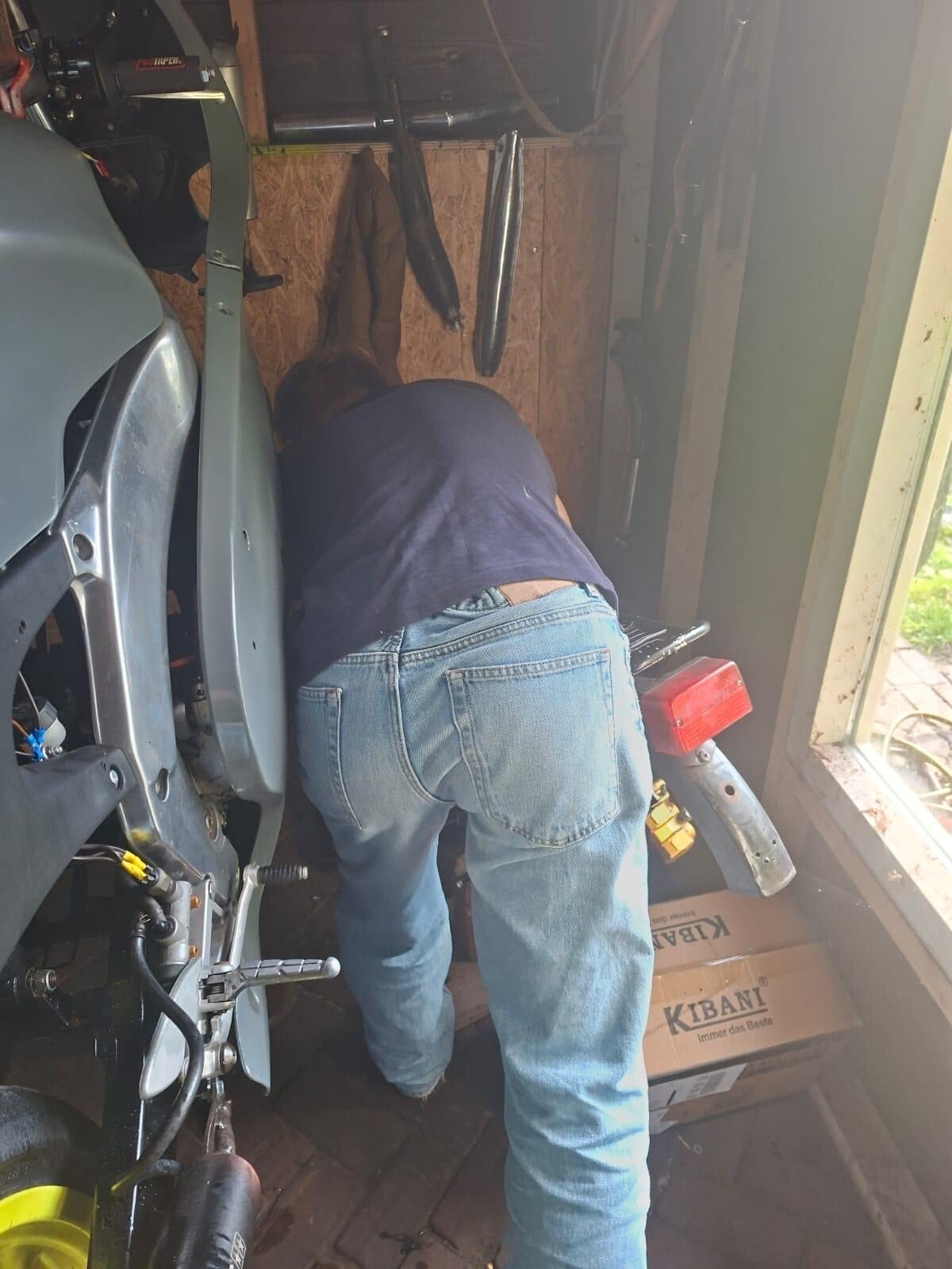 Soms neem je tijdens het sleutelen een rare positie aan. Gemaakt door Bas de Haan.